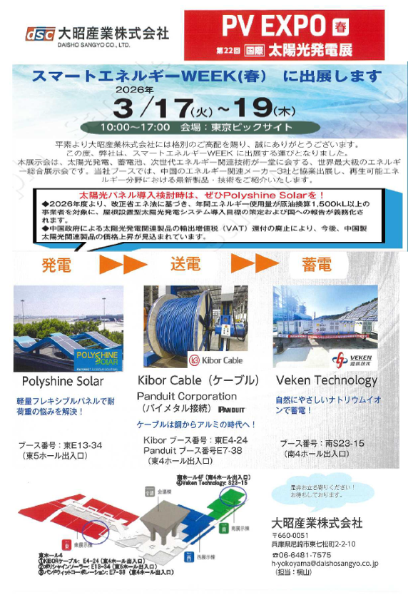 2026年3月17-19日 第25回 スマートエネルギーWEEK 2026に出展します。